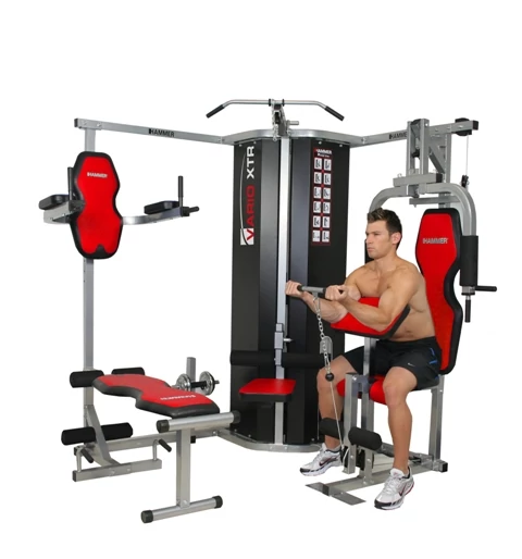 Hammer Corner Gym Vario XTR kondigép Azoknak ajánljuk a Hammer Corner Gym Vario XTR kondigépet akik szeretnek egyszerre többen edzeni,és mindezt úgy hogy a többi ilyen tudású kondigéphez képest lényegesen kevesebb helyre van szükség. Ez a kondigép kifejezetten sarokba lett tervezve. Minden fő izomcsoportot megmozgat, ezenfelül tolodzkodó hasprés, különálló hátgép, és egyenespad a tárogatáshoz , amely lehajtható haspadnak is tartozéka ennek a masszív, multifunkciós kondigépnek.